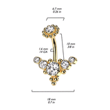A cluster of stunning cubic zirconia gems, formed to frame the curve of your navel piercing. The body jewellery is designed to maximise light refraction, delivering a sophisticated, high sparkle burst of pizzazz!