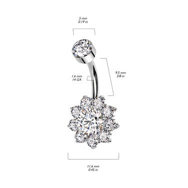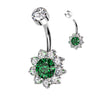 Our classic flower belly ring is now available in premium implant grade titanium with a secure, internally threaded top ball. The base flower cluster is a generously sized 10.6mm floweret with the highest grade cubic zirconia gem stones, available in three gorgeous colours.