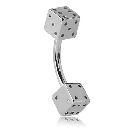 Twice the dice!!! This lucky pendant belly piercing is comfortable to wear and boasts matching 5mm surgical steel dice. The body jewellery is available in a variety of custom sizes from a small 6mm all the way up to an extra long 19mm.