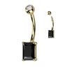 • The base of the belly bar features a square gem, sized 5mm x 7mm, 14k yellow gold with a prong set gem.
