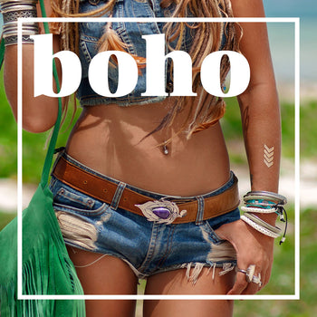 Our Bohemian collection of belly button rings includes the popular dream catcher belly dangles, Hamsa Amulet hands, OM and Peace symbols, cheery florals, vintage chandeliers, colourful compilations and tribal designs. You'll find pot leaves, Jamaican belly button rings (yes, Bob Marley!), marine creatures, Balinese designs and much much more. Check out our cute range of yoga themed belly jewellery plus Sun and Moon belly rings for our ladies who celebrate mother nature.