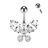 This belly bar boasts a luscious crystal gem encrusted butterfly. The full piece is light weight and comfy to wear with a glamorous, eye catching finish.