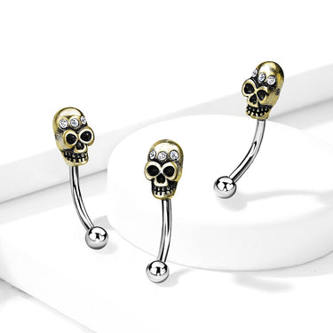 A bold yet petite belly ring crafted from 316L surgical steel, featuring a single detailed skull end paired with a smooth ball end for balance. Designed with secure external threading and a comfortable curved shape, it offers a subtle alternative style without compromising on durability. Sold individually.