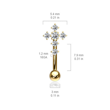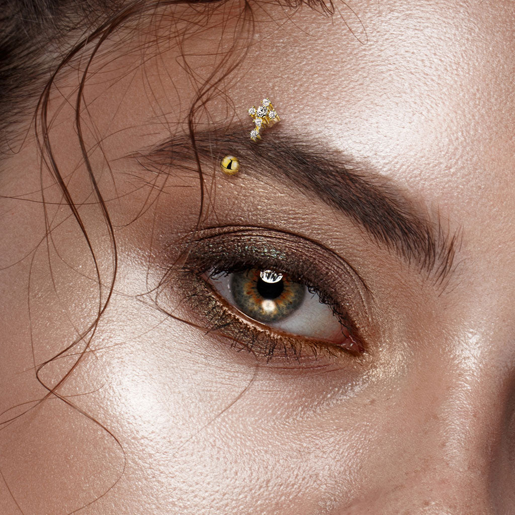 - Design: Petite reverse belly ring with cross-top curved barbell, OR can be used for eyebrow piercings