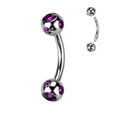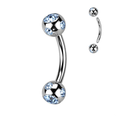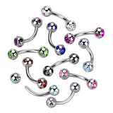 A clean, polished eyebrow curve set with multi‑gem 4mm balls for a bright, balanced finish. Made from 316L surgical steel, it offers durability, smooth wear, and a secure fit for everyday styling. Sold individually.