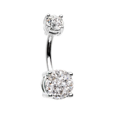 - The base of the belly bar features a ball sized 8mm, 316L surgical steel with a prong set gem.