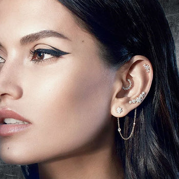 Did you know the helix piercing is the second most popular piercing next to the lobe piercing? We love the double helix and the trio helix piercings, lining up stylish hoops along the back of the ear for an accentuated, glamed up finish.