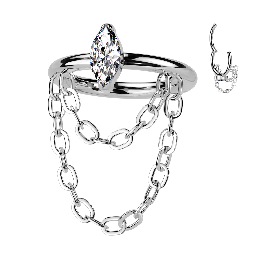 Implant Grade Titanium Hinged Hoop with Marquise Cubic Zirconia and Double Chain