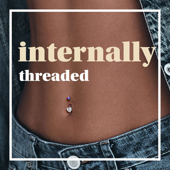 Internally threaded belly button rings are superior in their design. The threading is tucked inside the bar and not visible from the outside, this means the threading can not rub against the tender piercing and are less likely to build up bacteria around the threading. For this reason, most new piercings are performed with internally threaded belly button rings. They are easy to wear and easy to keep clean from bacteria.