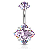 This diamond shaped diamanté belly ring is a simple and comfortable design that boasts the classic claw setting at both the top and base of the navel post.