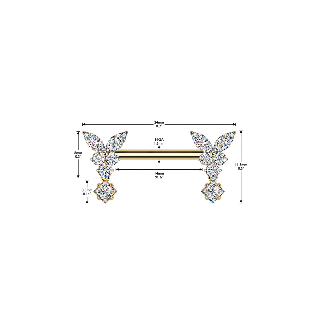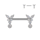 316L Surgical Steel Threadless Push In Butterfly Nipple Barbell With CZ Dangle