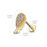 Sophisticated and glamourous, our range of surgical steel and 14k rose gold plated cartilage earrings. Featuring a cubic zirconia paved angel wing in 16g, available in 1/4'' (6mm) and 5/16'' (8mm).