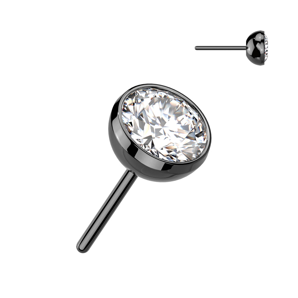 Black Plated Titanium Threadless Push In Bezel Set CZ Ball Top