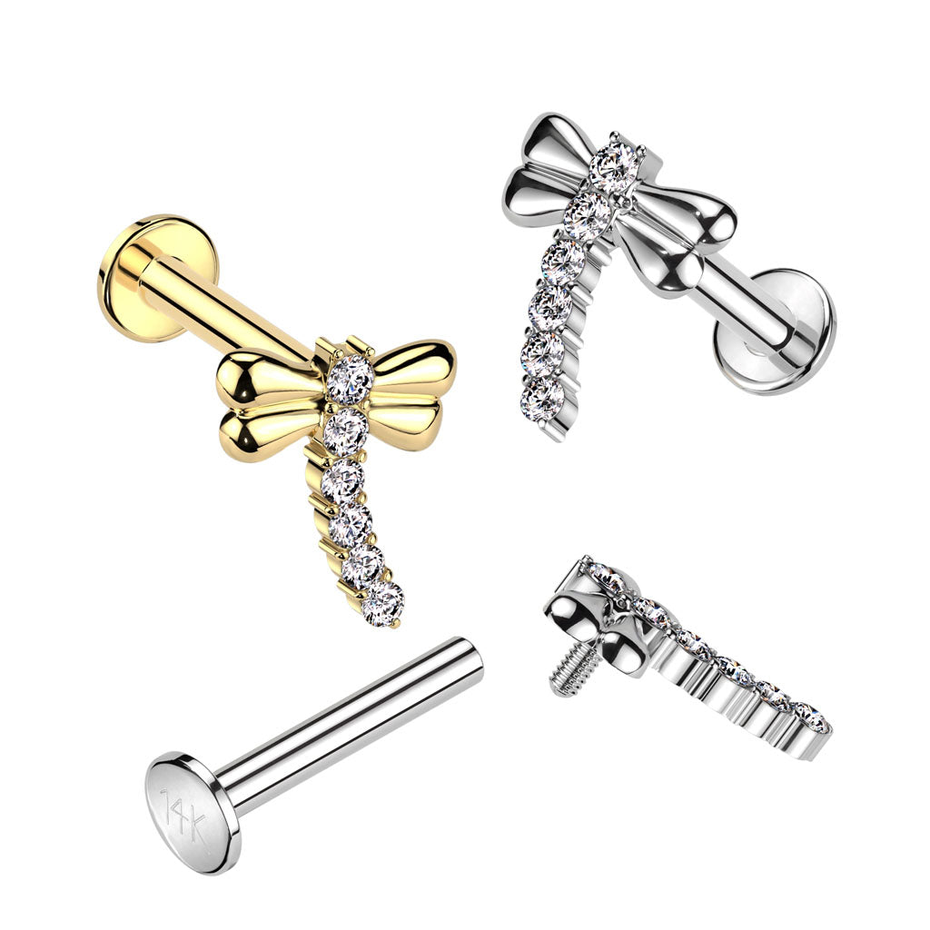 Internally Threaded 14K Yellow Gold CZ Dragonfly Labret