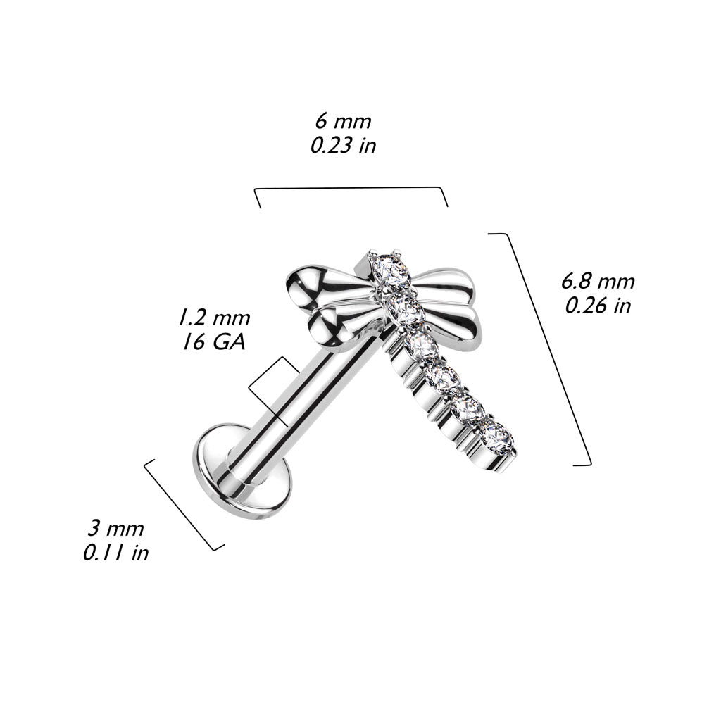 - Design: CZ dragonfly top labret stud