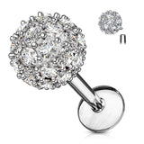 A stunning cubic zirconia Motley™ paved ear stud to create a fabulous statement for your earring collection or labret piercing. Glitzy body jewellery to complete your curated ear. A perfect accent piece for your helix, conch or tragus with a touch of classic glam. Extra comfortable to wear with a thin, flat backing.
