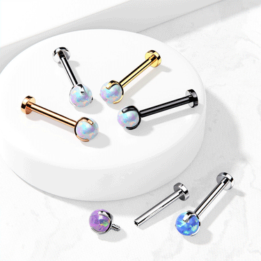 For our opal loving customers, a necessity for all collections, an internally threaded earring featuring a 3mm white claw set opal ball. A perfect accent piece for your helix or tragus with a touch of refined punk. Available in three different metals.