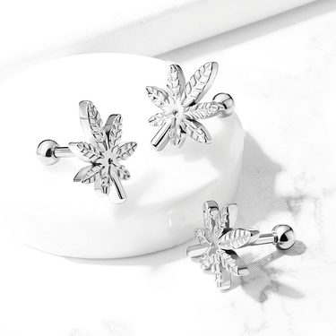 Connect with your inner hippy with this marijuana leaf steel earring. A perfect accent piece for your helix or tragus with a touch of refined punk.