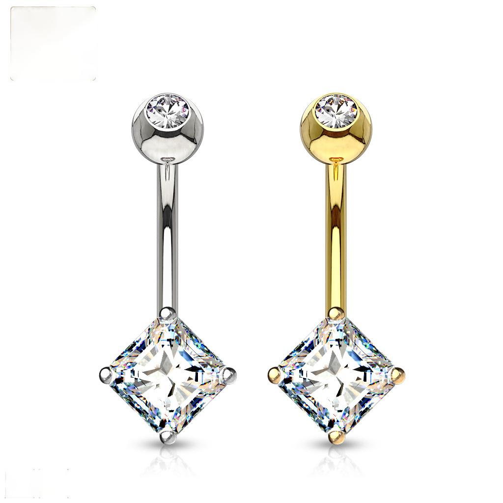 Solid 14K Yellow Gold Navel Ring with Square Princess‑Cut Cubic Zirconia