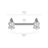 Check out our ultra glam classic nipple piercing rings with a multi gem setting. The nipple ring boasting cubic zirconia gems on a push in mechanism. These nipple rings have a altered push in design for easier placement and wear.