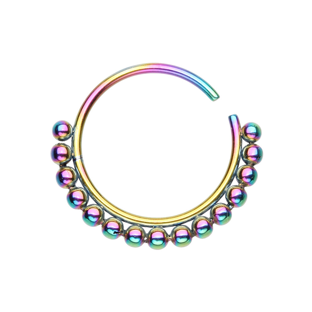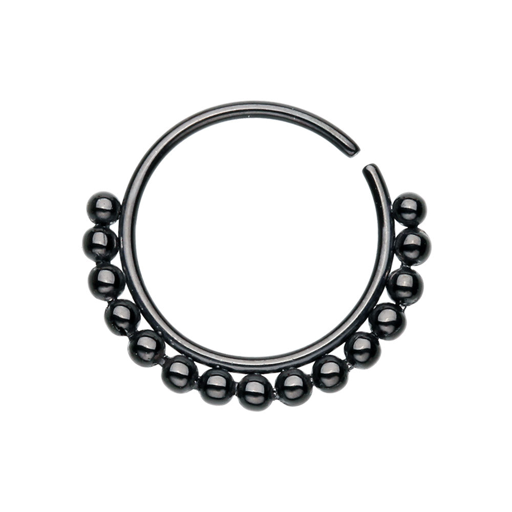 A flexible and easy‑to‑wear bendable nose hoop featuring a classic Bali ball design. Crafted from surgical steel with a colourline finish, it offers durability, comfort, and a smooth bend‑to‑fit style ideal for everyday wear. Available in black or rainbow finishes and in two versatile diameters. Sold individually.