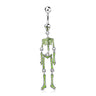 The skeleton attached to this belly bar has chain links for the neck, knees and elbows, giving the skeleton a moving body and moving limbs. The whole charm dangles freely providing an effective touch that the photo can't show you. The skull of the skeleton is the actual bottom base of the belly ring instead of the typical gem base. Very cool!