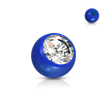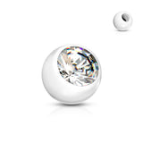 This 14g replacement ball is comprised of 100% UV Acrylic (plastic) with a cubic zirconia gemstone.