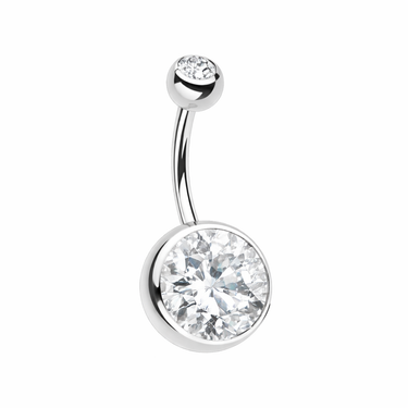 - The belly bar is dressed with a 5mm 316L surgical steel top ball with a press fit gem.