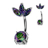 Our crowned Señora belly bars deliver a high elegance with a unique petal top. Featuring a generously sized prong set base which is elaborately crowned with a trio petal setting that creates an eye catching finish.