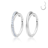 This 16g, 10mm titanium rebel snaps in with a click and spins heads with a clever asymmetry: an orbit of pavé sparkle wraps over sleek minimalism. It’s not trying to be balanced - it’s trying to be brilliant, because sparkle hits harder when it’s unexpected.