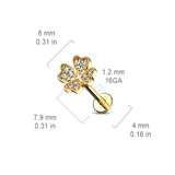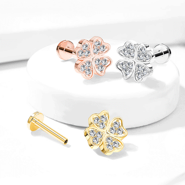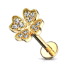 Lucky Clover Body Jewellery with Gold Plating. Labret, Monroe, Tragus and Cartilage Earrings.