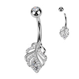 316L Surgical Steel Belly Ring with CZ Leaf & Top