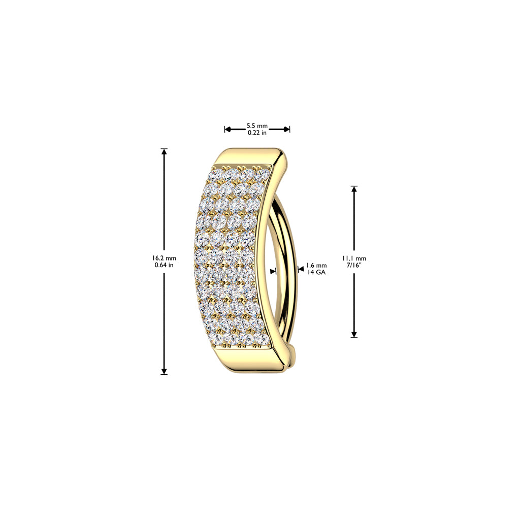 316L Surgical Steel Hinged Belly Ring With 4 Lines Pave CZ