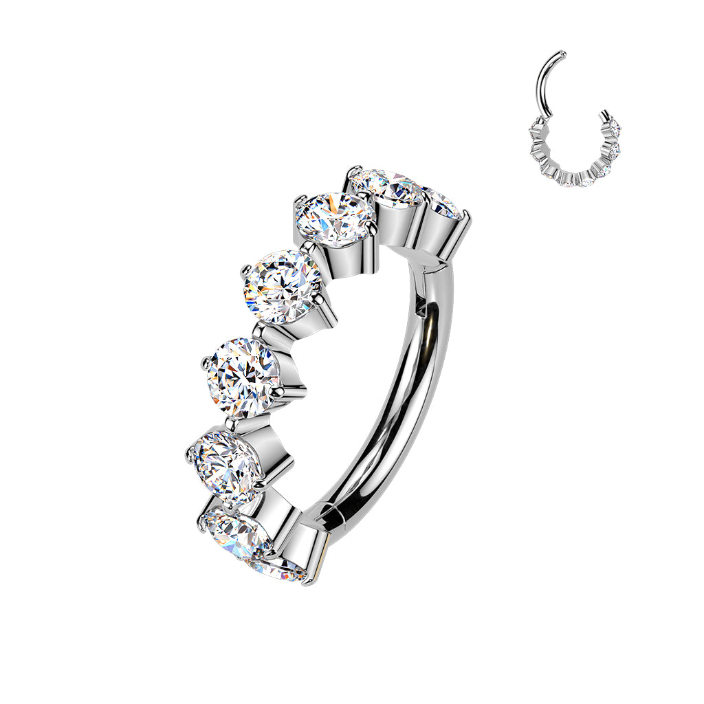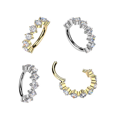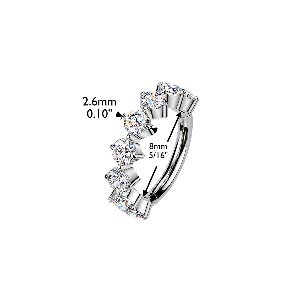 This Implant Grade Titanium Outward Facing CZ Hinged Segment Hoop Ring is crafted from ASTM F136 implant‑grade titanium, ensuring premium safety, durability, and brilliance. Featuring eight outward-facing round CZ stones, it delivers a radiant sparkle and elegant style. The hinged segment mechanism allows smooth, secure, and comfortable wear, making it ideal for professional body piercing applications.