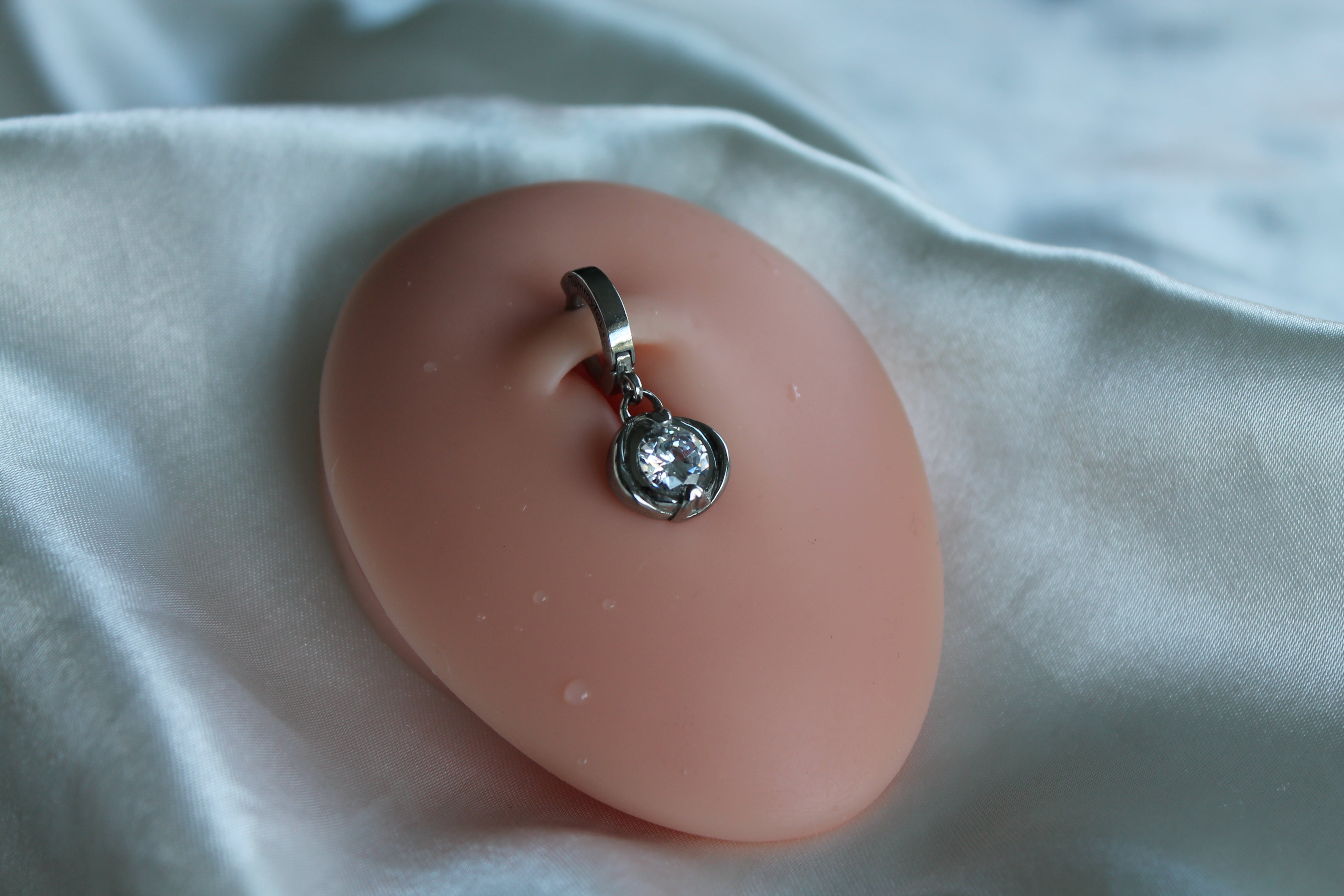 You're viewing a dazzling solid surgical steel belly piercing that boasts a large round bezel set sparkling clear diamante diamante.