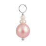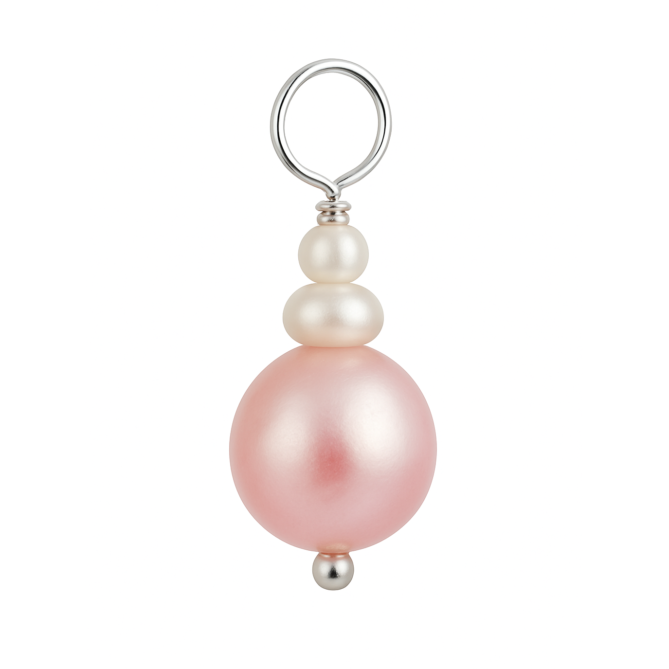 This charm features a delicate trio of genuine freshwater pearls: two petite white pearls at the top and a soft pink focal pearl at the base, all paired with 100% 925 Sterling Silver.