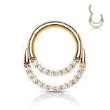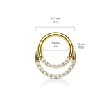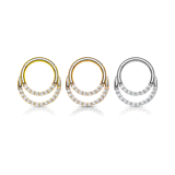 This clicker body jewellery features a delicate dangling twin loop that delivers a classic and crystal paved ring, perfect to complete your look. A perfect accent piece for your helix or septum piercing.
