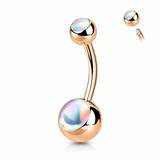 Charlie's Iridescent Stone Belly Ring with Rose Gold Plating
