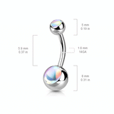 This is our iridescent stone belly rings, colourful and bright. The belly bars are comfortable to wear, bargain priced and suitable for year round wear. Waterproof and durable, our iridescent stone belly rings offer a unique twist on the standard classique belly bars.