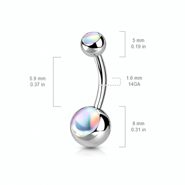 - The base of the belly bar features a ball sized 8mm, with a press fit gem.