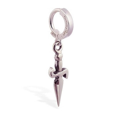 The dagger represents many things, most commonly a secret weapon in a stealth assassination, hidden until the time is just right. It also represents the overcoming of obstacles, duality of life, fearlessness and danger. Delivering a unique style, this awesome belly button ring is a must have for your navel piercing collection. The full piece, including both the clasp and pendant is solid 925 silver.