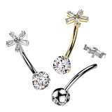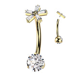 Gold Titanium Baguette Daisy Topper Belly Bar with Internal Threading