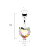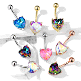 This rose gold plated diamanté heart solitaire belly ring is a classic understated piece that looks very sexy on. The romantic belly button ring boasts milky aurora borealis gemstones.