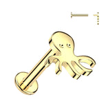 Internally Threaded Octopus Top Stud in 14K Yellow Gold