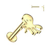 This 14K Gold Internally Threaded Labret with Octopus Top features a 3mm base size for secure, comfortable wear. Crafted from solid 14K gold, it ensures premium quality and lasting brilliance. Designed for professional body piercing applications, it offers durability, safety, and ease of use.
