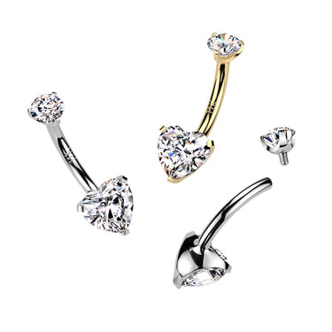 Internally Threaded White Gold Heart Belly Ring