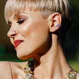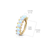 A set of seven synthetic opal gems set on a bendable hoop ring crafted from 316l surgical steel, for a subtle yet mesmerising shimmer. Designed for effortless wear and versatility, these hoops are perfect for ear cartilage, eyebrow, nose, and more, allowing endless styling possibilities. Their smooth, flexible structure ensures a secure and comfortable fit.