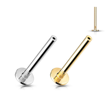 Our yellow gold threadless flat back studs are available in the industry standard 16g and 18g gauges and are compatible with most threadless tops.