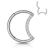 Implant Grade Titanium Hinged Segment Hoop with Pave Cubic Zirconia Crescent Moon