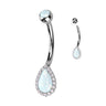 This premium belly button ring is comprised of 100% 14K White Gold with the highest grade cubic zirconia gemstones and a synthetic opal focal.